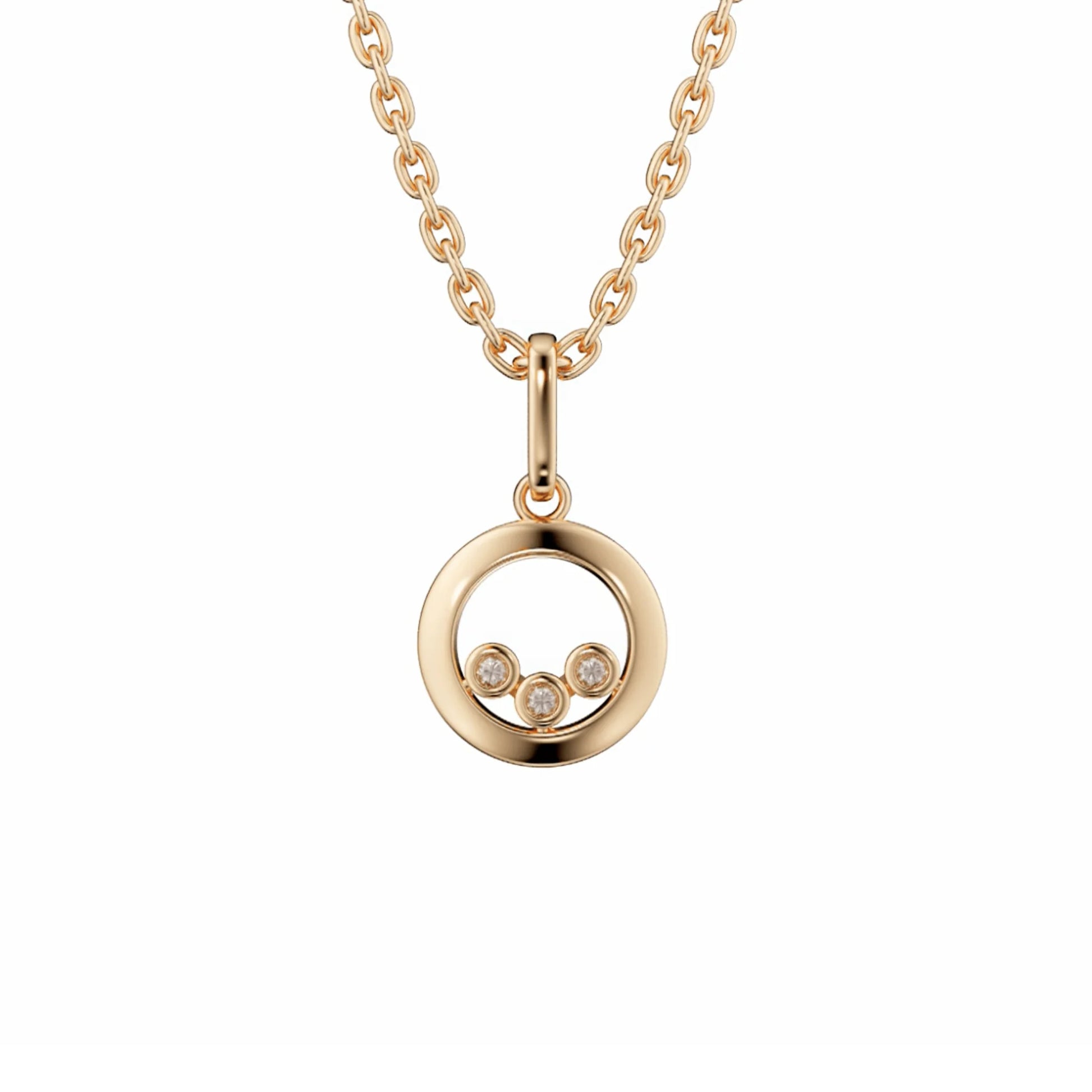 This elegant pendant showcases three bezel-set pink diamonds encircled by an elegant gold "Circle of Life". This sophisticated and chic accessory is a beautiful addition to any jewellery collection