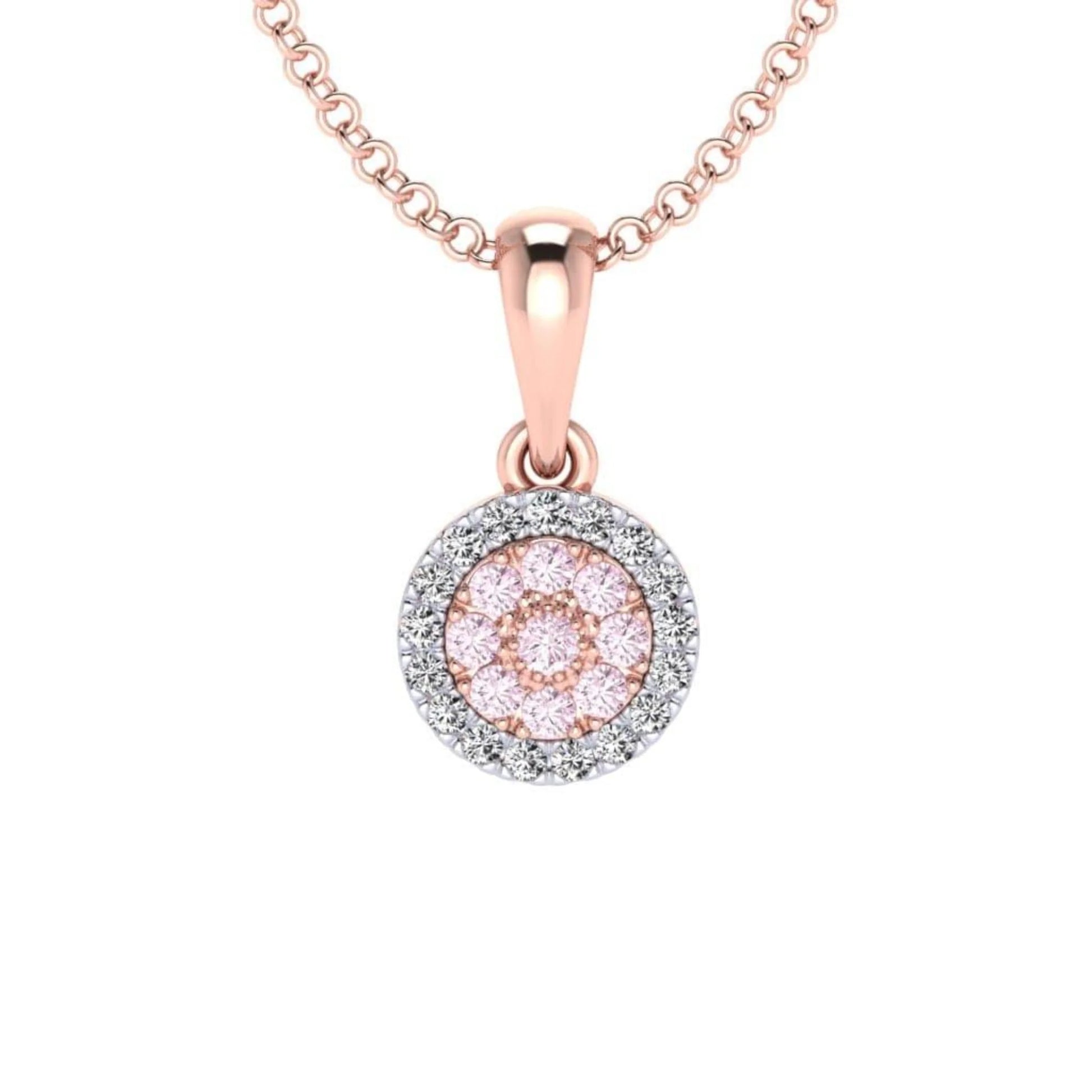 The Eminence Pink pave disc pendant are crafted with Pink diamonds from the Argyle mine in Western Australia and surrounded by a halo of sparkling white diamonds. Classic yet beautiful, this pendant is perfect for both everyday wear and for a formal event.