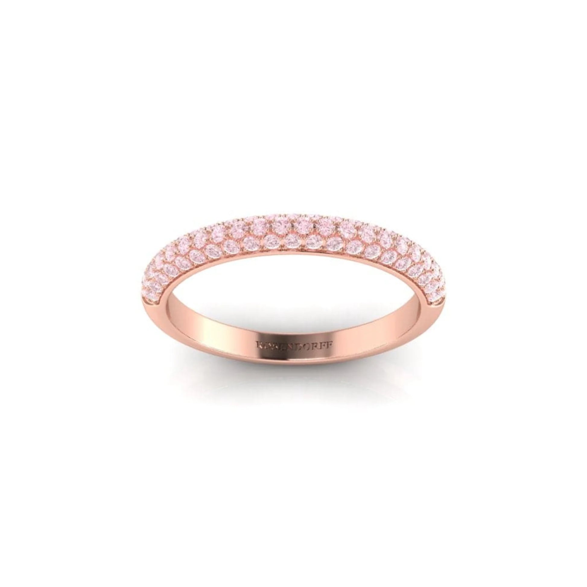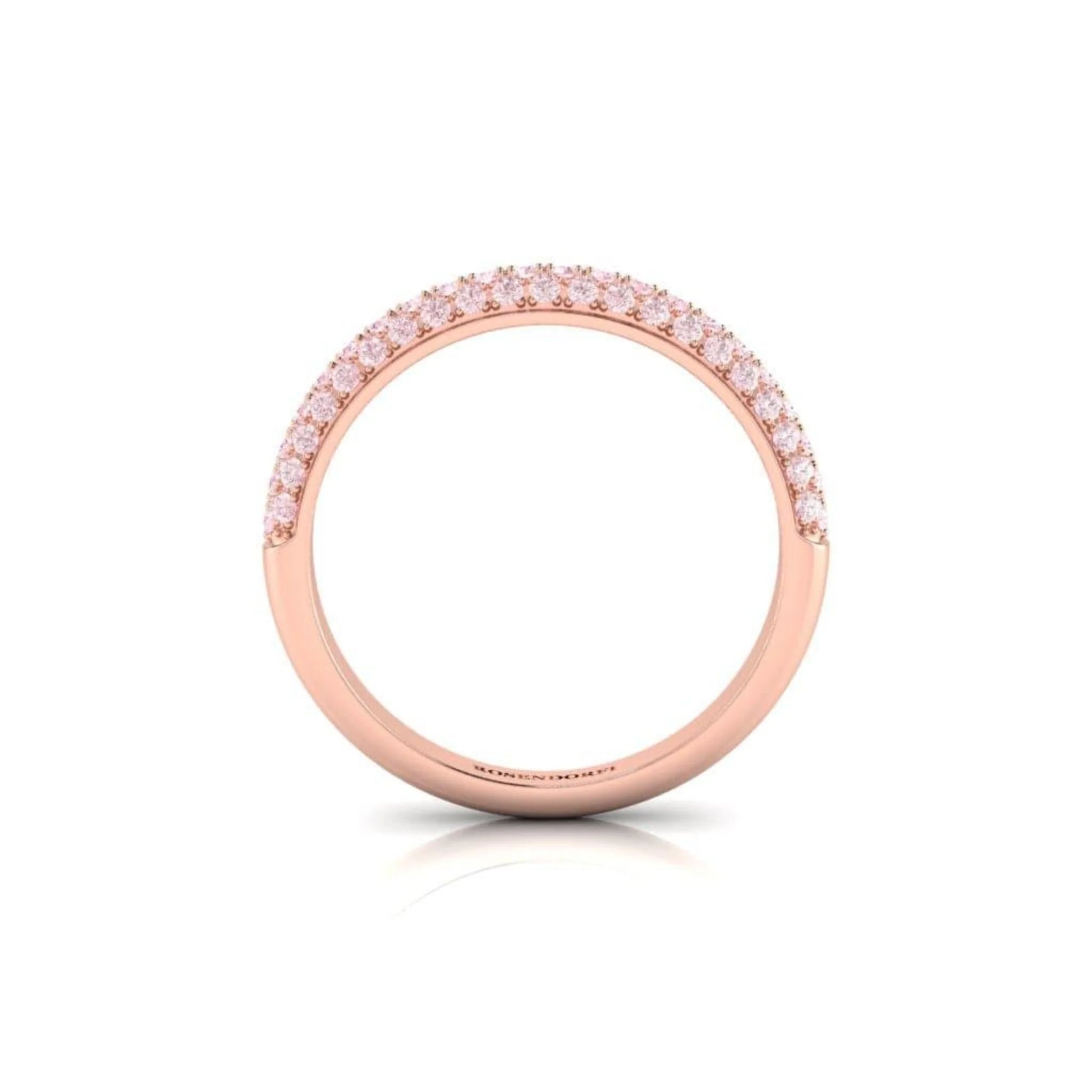 A chic and sophisticated piece of jewellery featuring a trail of shimmering pink diamonds. Whether you wear it alone as a statement piece or stack it with other rings, it's the perfect way to add a touch of elegance to any outfit.