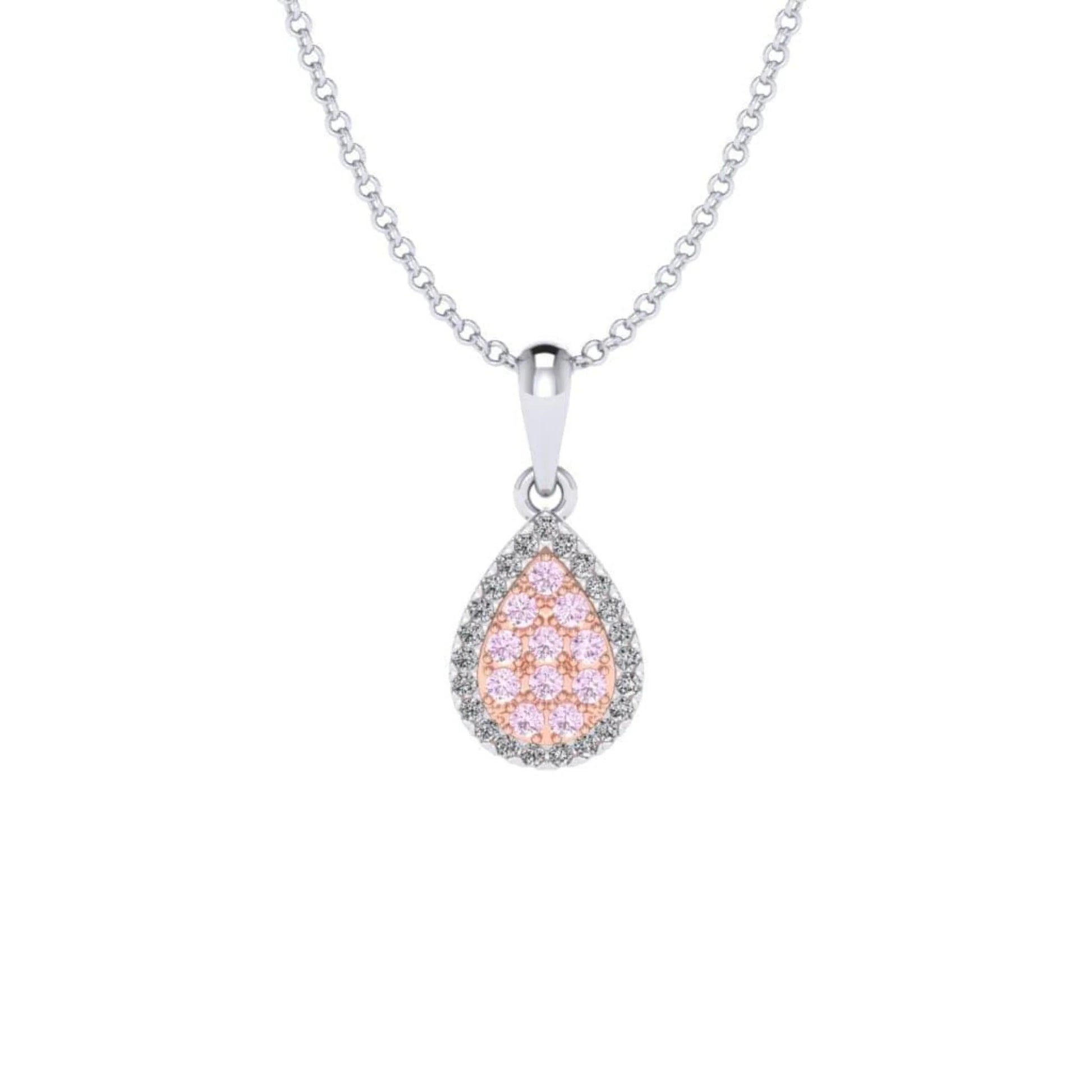 This elegant pear pendant feature Pink diamonds from the Argyle mine in Western Australia and are surrounded by a halo of sparkling white diamonds. Simple yet stunning, this pendant is perfect for any occasion.