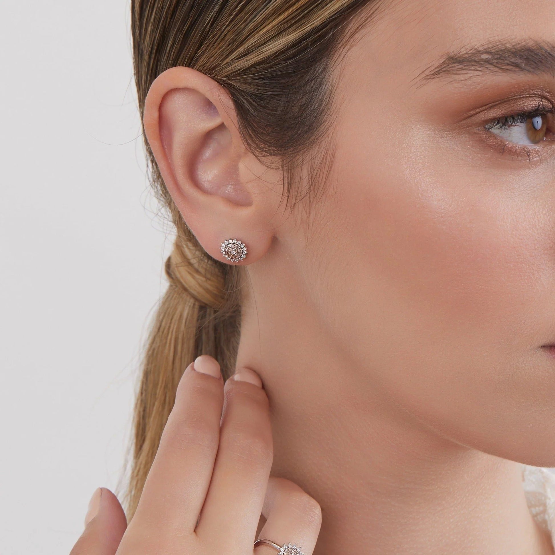 Inspired by the vibrant and cheerful sunflower, these earrings feature rare pink diamonds surrounded by a delicate, petal-like halo of white diamonds in gorgeous three-claw settings. These earrings are the perfect way to bring a touch of sunshine to your jewellery collection.