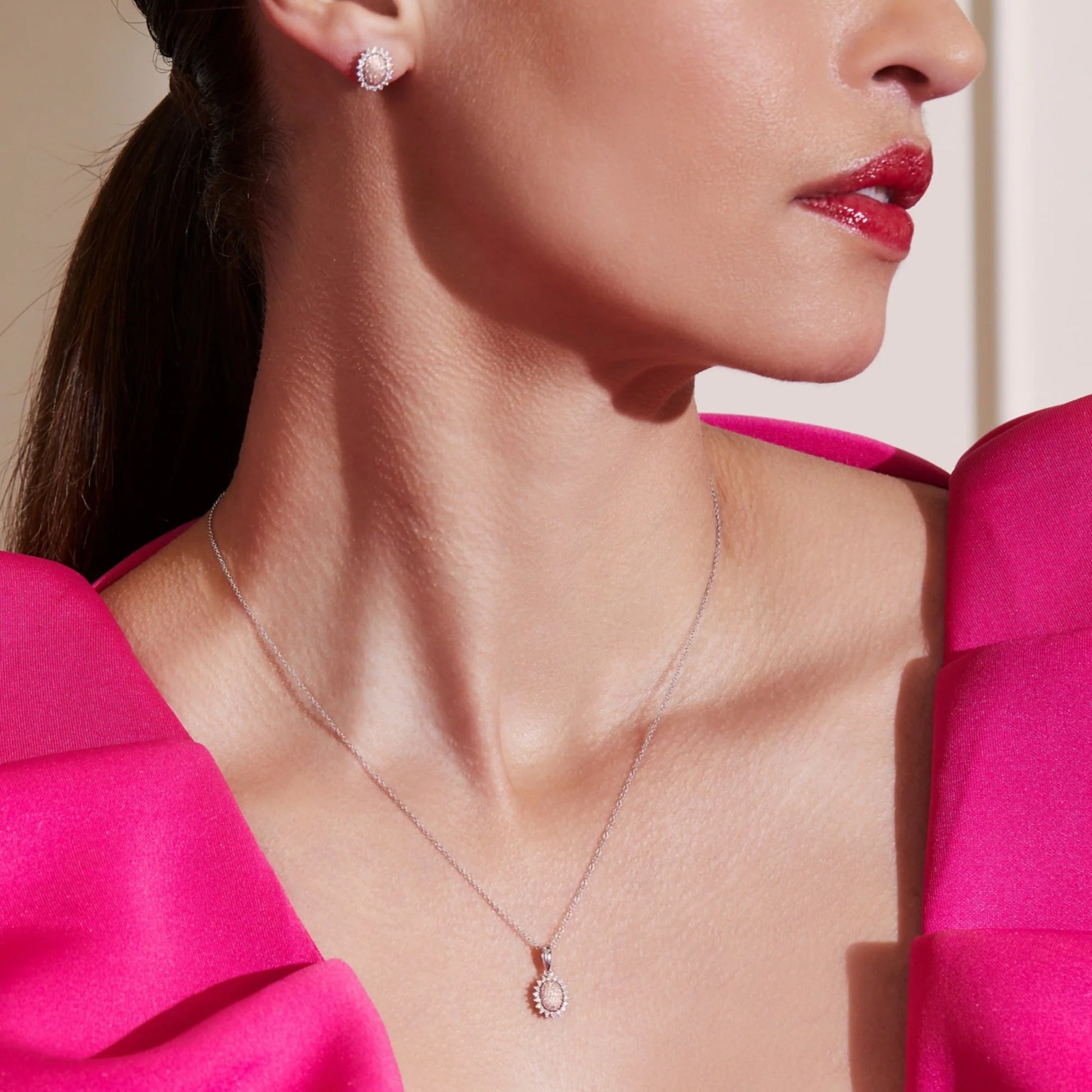 Eminence Pinks Sunflower Oval Pave Pendant