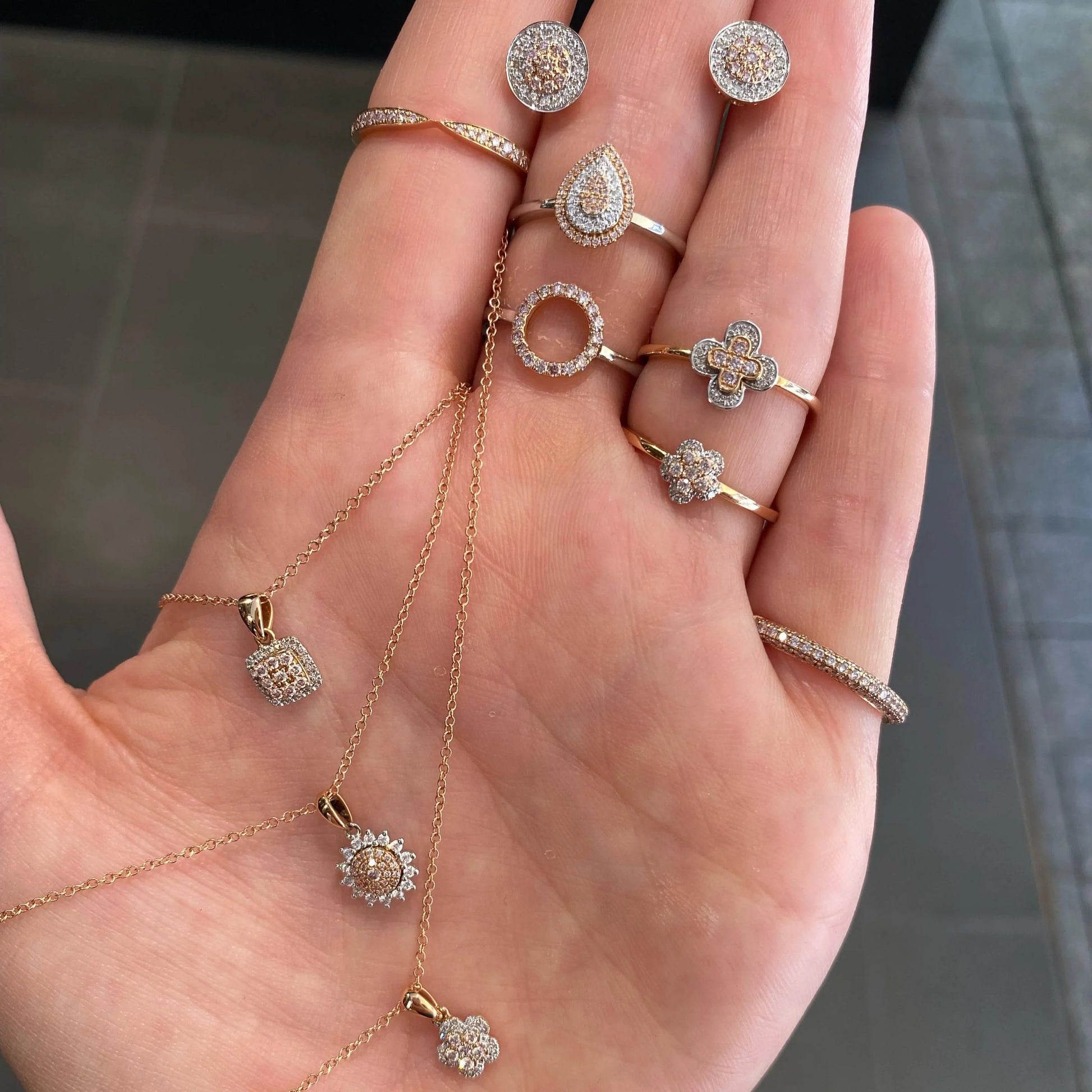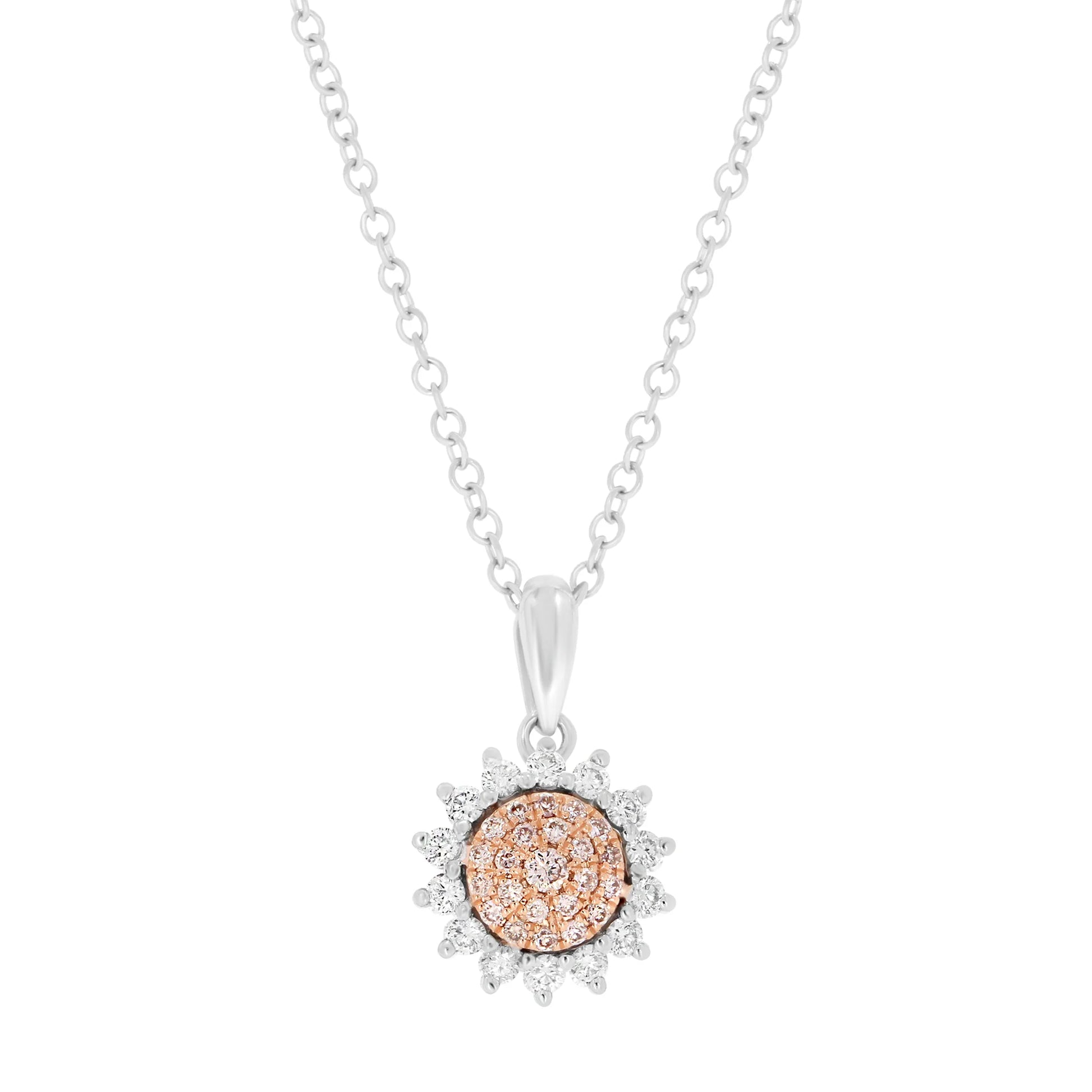 Inspired by the vibrant and cheerful sunflower, this pendant features rare pink diamonds surrounded by a delicate, petal-like halo of white diamonds in gorgeous three-claw settings. This ring is the perfect way to bring a touch of sunshine to your jewellery collection.