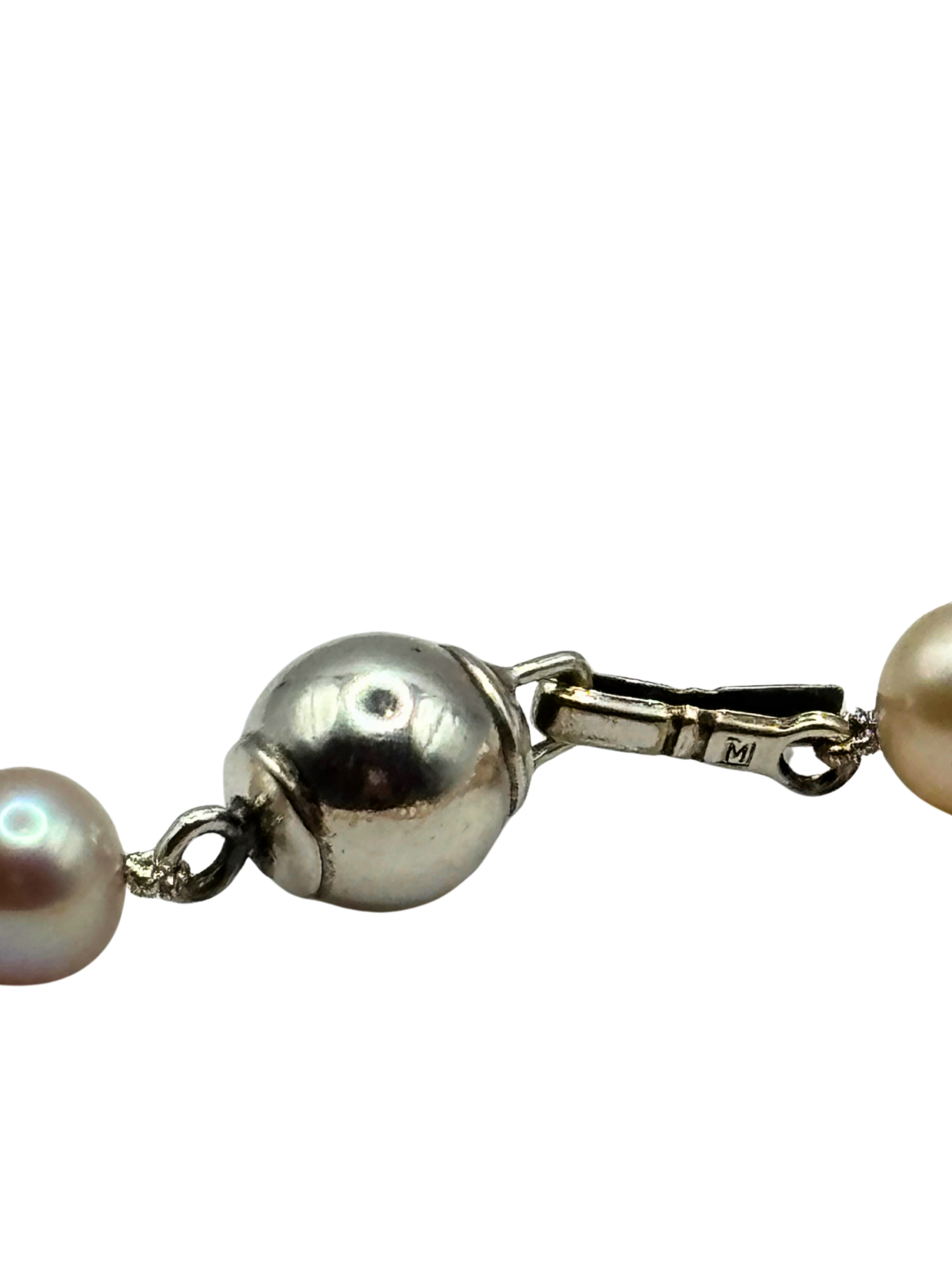 The pearls are strung on a sturdy silver clasp, creating a timeless piece perfect for everyday wear or special occasions.