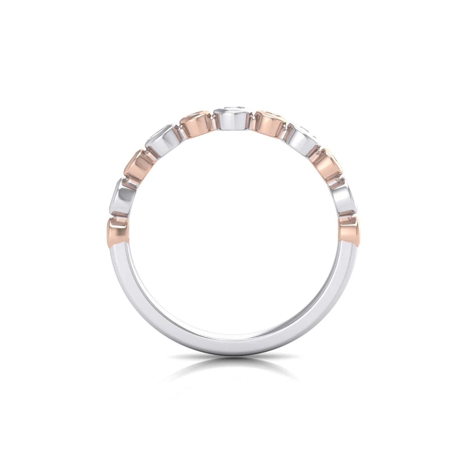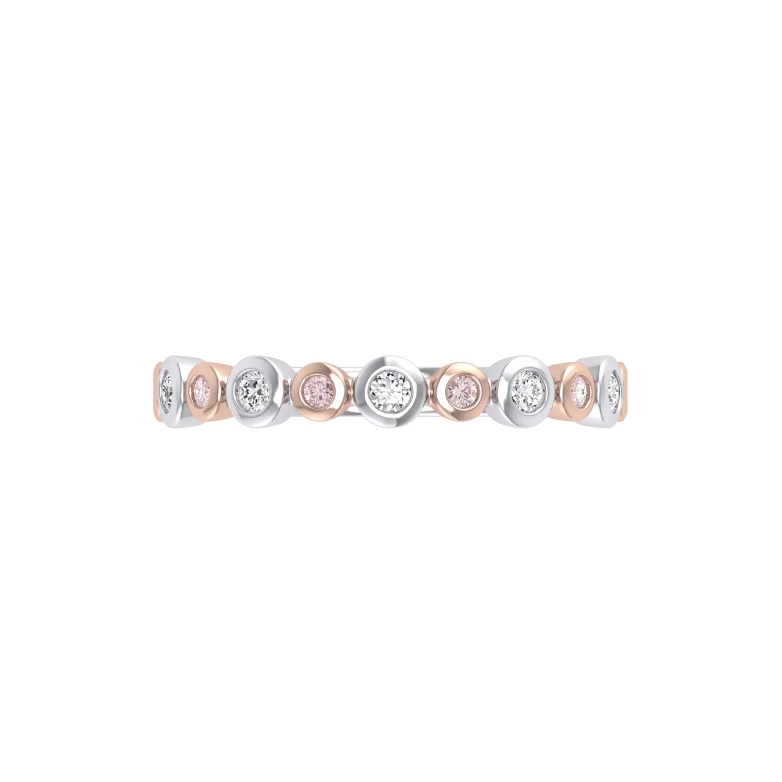 Discover the epitome of elegance with our Pink & White Alternating Bezel Ring. This exquisite piece harmoniously blends two luxurious metals and an array of dazzling diamonds to create a ring that’s both timeless and modern. The brilliant white diamonds are set in 18k white gold, whilst the mesmerising pink diamonds from the Argyle Mine in W.A are set in a warm rose gold to offset their pink tone.